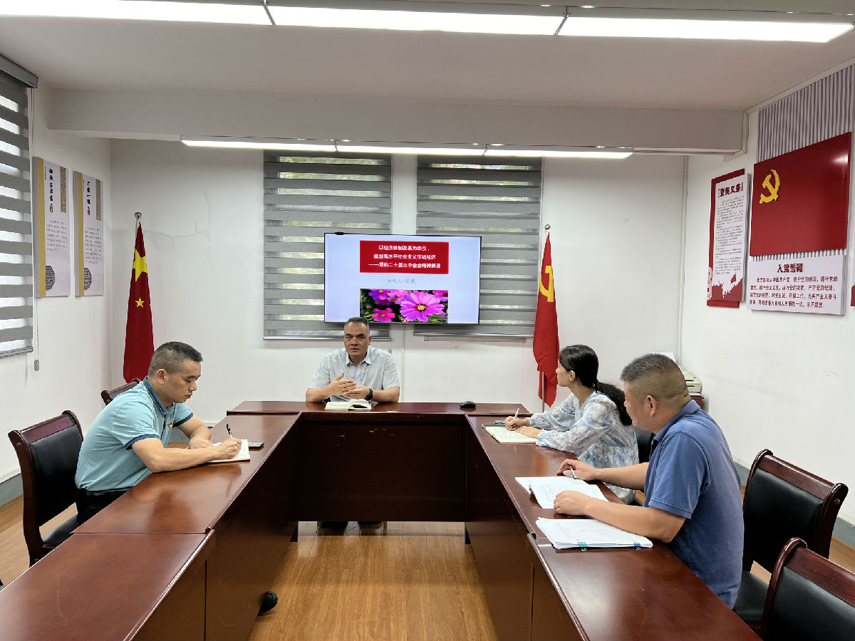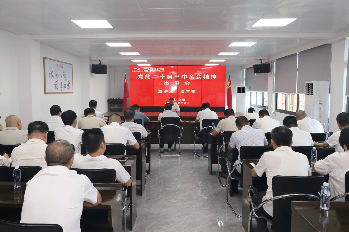 率先垂范,發(fā)揮帶動作用。7月25日,公司黨委理論學(xué)習(xí)中心組學(xué)習(xí)(擴(kuò)大)會,原原本本學(xué)習(xí)會議公報和《決定》,并結(jié)合工作實(shí)際深入研討學(xué)習(xí),部署公司貫徹落實(shí)措施。融入日常,營造宣傳氛圍。設(shè)立“聚焦二十屆三中全會”公眾號專欄,轉(zhuǎn)發(fā)《人民日報》等媒體解讀文章、報道公司宣貫全會精神舉措。組織黨員職工積極自學(xué),通過逐字逐句領(lǐng)學(xué)、交流心得研學(xué)、碎片時間自學(xué)等方式,持續(xù)抓好精神學(xué)習(xí)。開展宣講,掀起學(xué)習(xí)熱潮。9月2日,公司黨委書記潘木枝采用“現(xiàn)場+視頻”形式宣講黨的二十屆三中全會精神,要求廣大職工增強(qiáng)改革思維,以解放思想、勇于開拓的創(chuàng)新精神,推動各項(xiàng)改革舉措落實(shí)落地,加快公司高質(zhì)量發(fā)展,培育壯大特級企業(yè)優(yōu)勢。